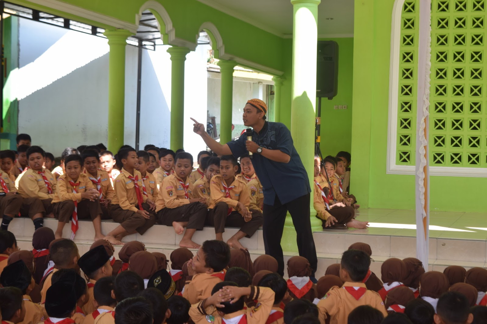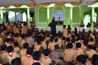 Akhirnya kegiatan yang ditunggu tunggu pun dimulai, belum juga hitungan menit seluruh siswa dibuat tertawa oleh Kak Husain, acara tersebut berlangsung dengan menyenangkan, siswa juga tampak antusias saat mendengarkan beliau mendongeng.